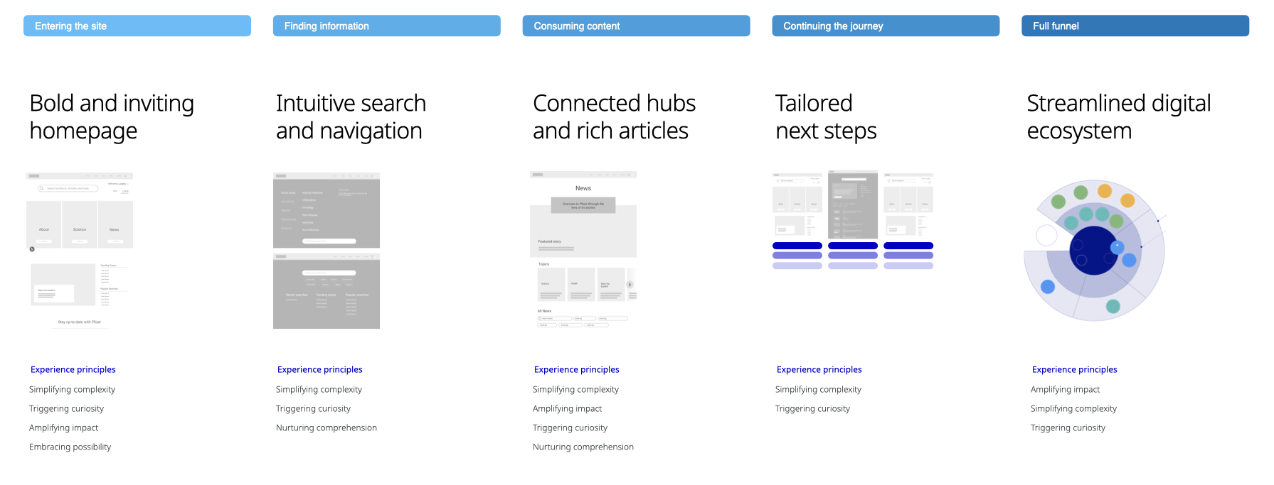 These insights along with Pfizer's brand promise of being in the vanguard of Breakthroughs that Change Patients' Lives led to the final site experience vision: